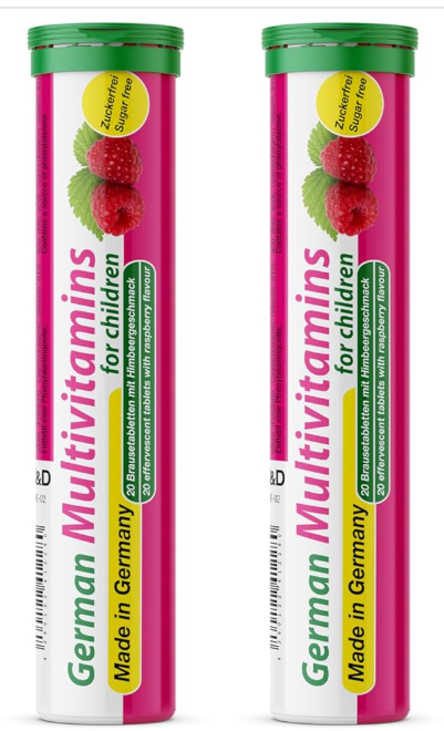 Check it outGerman Multvitamin for Children 8 Vitamins - 100 Vegan Drink Effervescent Tablets - Raspberry Flavor - Made in Germany