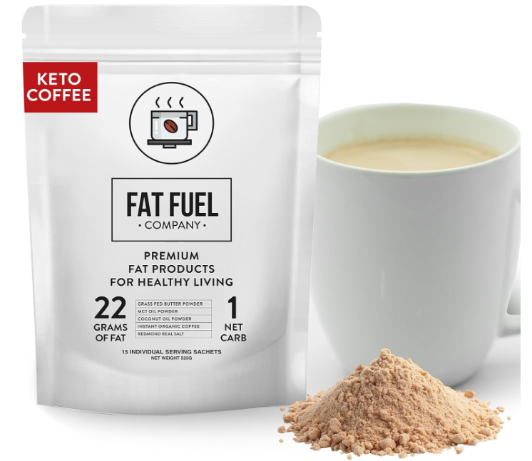 FAT FUEL Keto Coffee 22g Premium Fats - With Grass Fed Butter, MCT Oil, Coconut & Redmond Real Salt - Instant Organic Coffee, One Net Carb, A True Meal Replacement - 15 Servings