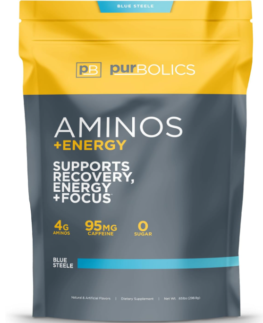 Purbolics Aminos + Energy | Supports Recovery, Energy & Focus | 95mg of Caffeine, 0 Calories & 60 Servings (Blue Steele) -