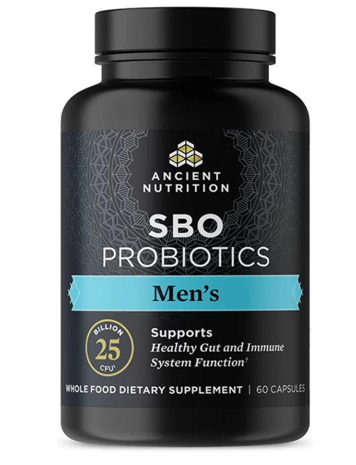 Ancient Nutrition Probiotics for Men, SBO Probiotics Men's 60 Ct, for Gut Health, Digestive and Immune Support, Boosts Muscle Mass and Fat Metabolism, 25 Billion CFUs* Per Serving
